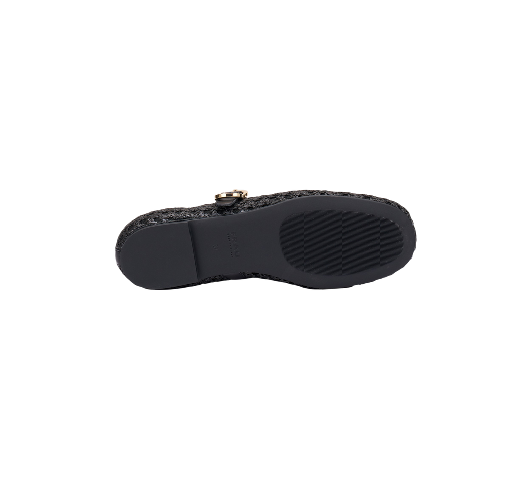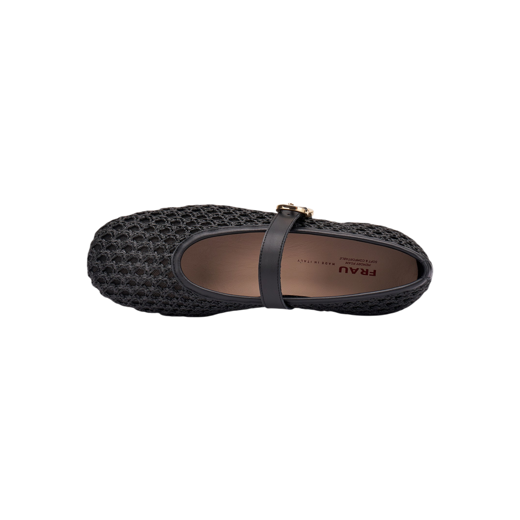 Frau - Ballerina con tomaia traforata nera con cinturino.