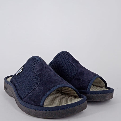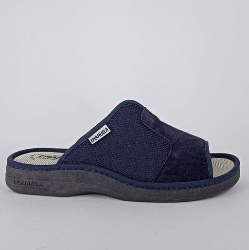 Emanuela - Ciabatta comoda uomo in tessuto blu.