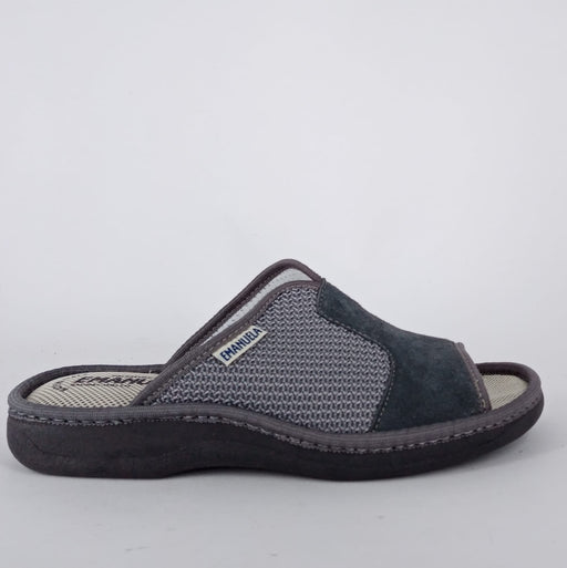 Emanuela - Ciabatta comoda uomo in tessuto grigio.