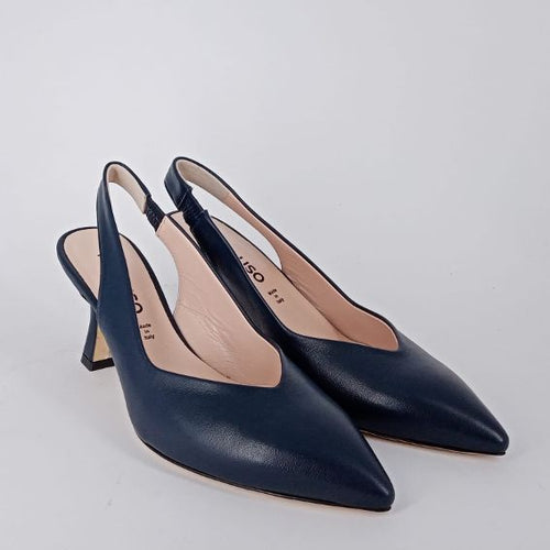 NERO GIARDINI - Decoltè aperto dietro in pelle laminata blu . -30%