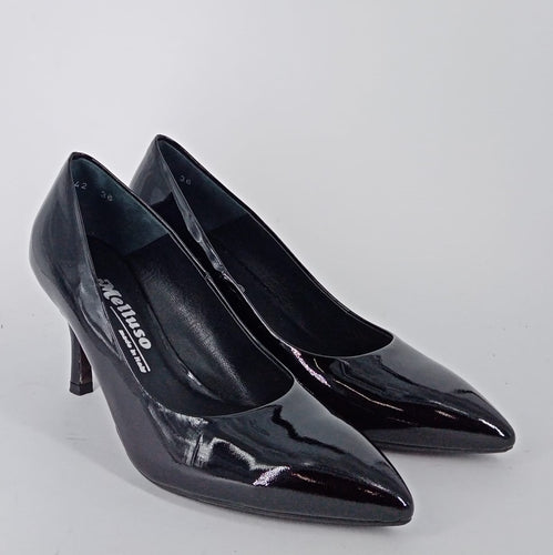 Melluso . Decolèttè slingback in tessuto lurex nero.