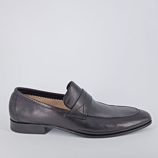 Calpierre . Mocassino in morbida pelle nera con traversino impunturato . E' un modello sfoderato adatto ai mesi caldi . La suola in cuoio è cucita al sottopiede e con questa pregiata lavorazione diventa una scarpa flessibilissima .