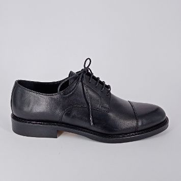 Francesina in pelle nera con puntale . Fodera in pelle e sottopiede imbottito .
