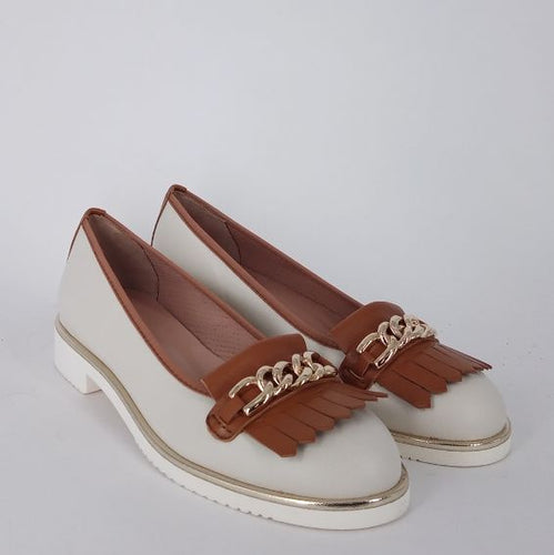 Cinzia Valle -Ballerina Mocassino in pelle panna e cuoio.