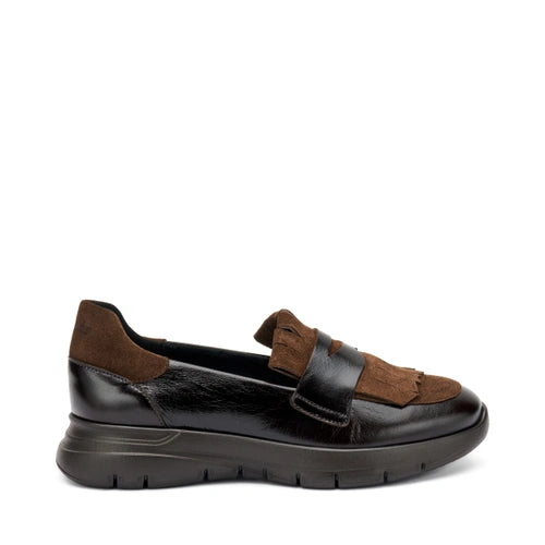 Frau - Mocassino donna in pelle e camoscio marrone.