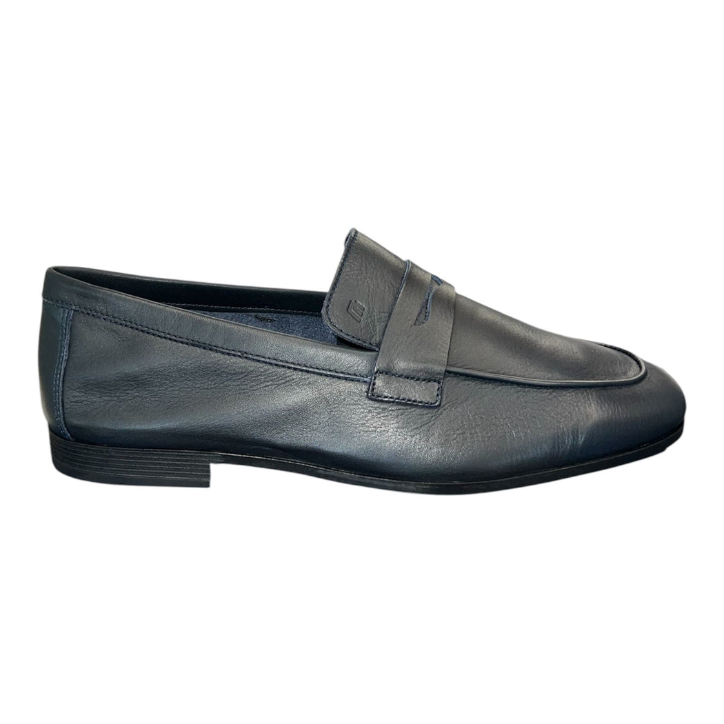 Mocassini uomo in pelle blu. Sottopiede in cuoio, mezza soletta in pelle. Suola TPU flessibile e leggera. Prodotto in Italia. Vestibilità Comoda. Altezza suola cm 1,5.