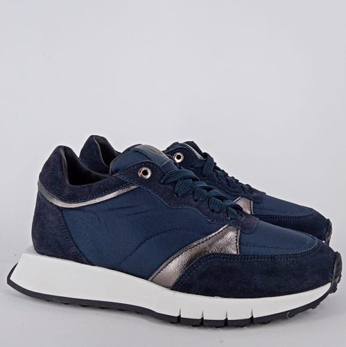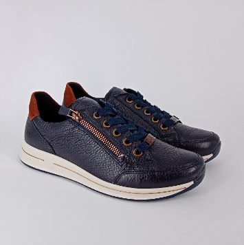 Ara - Sneakers in pelle e camoscio blu con zip.