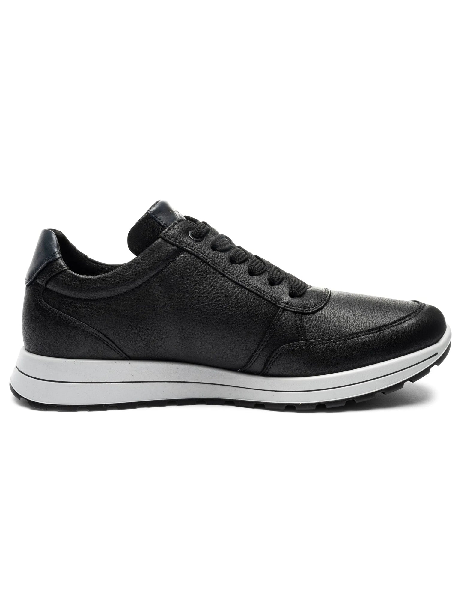 Sneakers in pelle blu con lacci e cerniera laterale. Fodera in spugna di bambù. Plantare estraibile . Ara la scarpa ideale per il tempo libero che ti renderà felice ogni giorno.