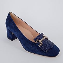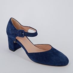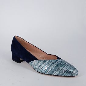 CINZIA VALLE . Decolletè in camoscio blu con riporti . -40%