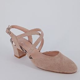 CINZIA VALLE - Decolletè SLING BACK in camoscio sabbia e riporti platino . -30%