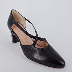 CINZIA VALLE . Decolletè in pelle nera con cinghie . -30%