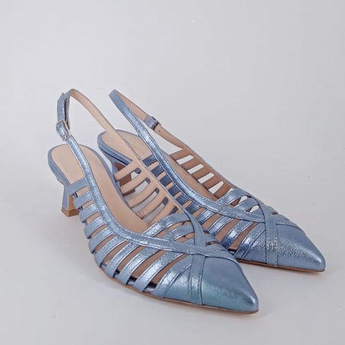 Melluso . Dècolletè slingback in pelle azzurra.