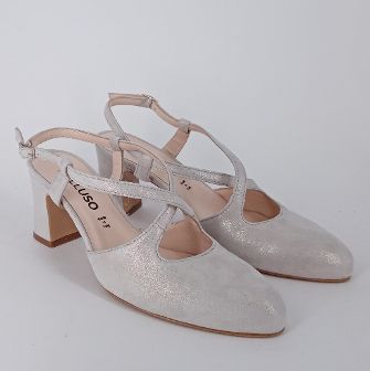 Melluso . Decolèttè slingback in tessuto platino .