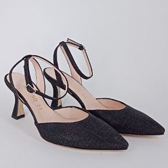 Melluso . Decolèttè slingback in tessuto lurex nero.
