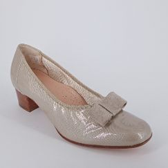Melluso . Decolèttè in camoscio perlato ghiaccio.