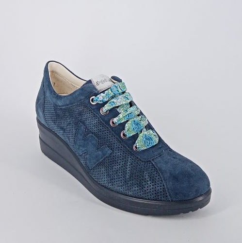 Ara - Sneakers in pelle e camoscio blu con zip.