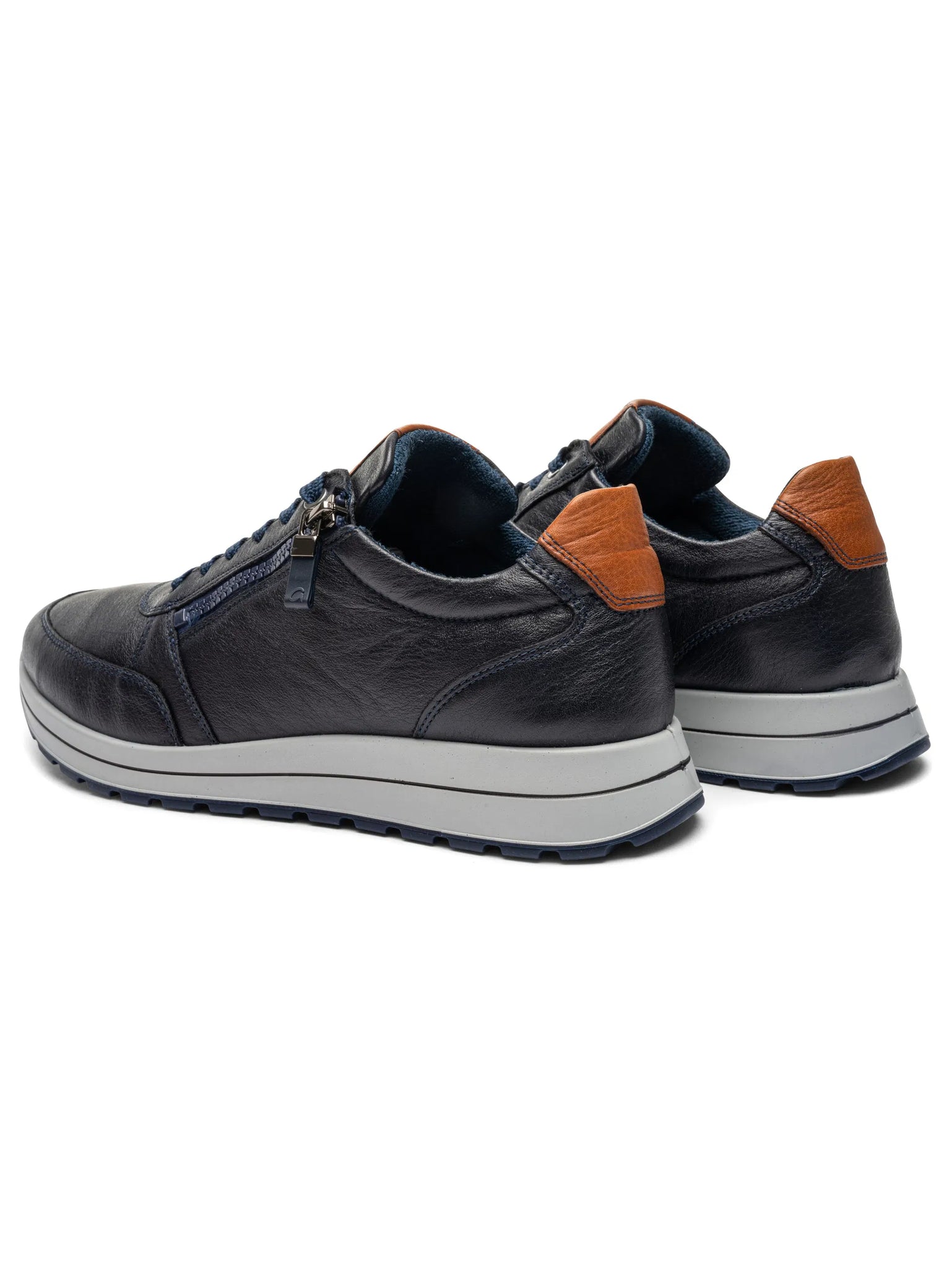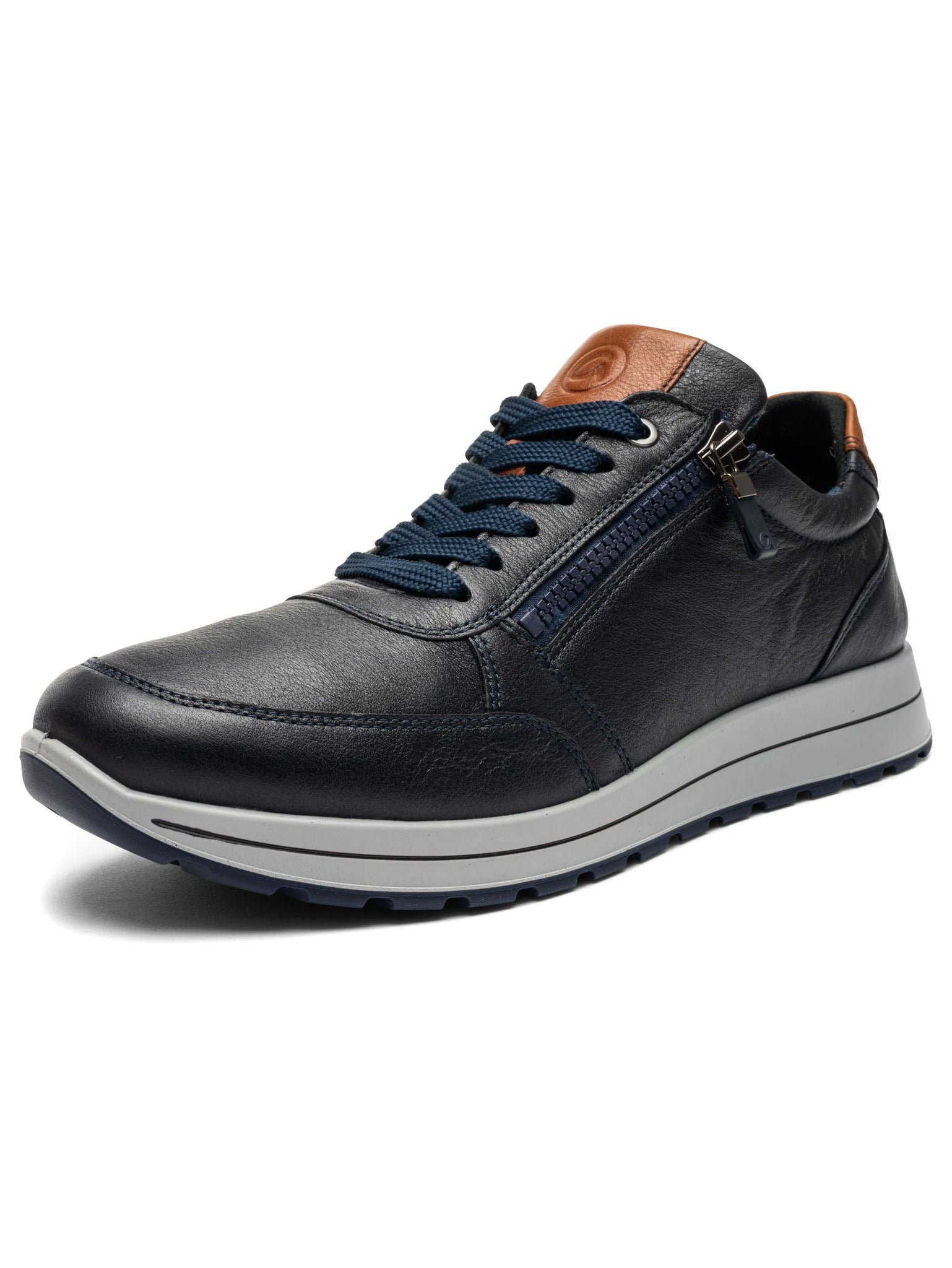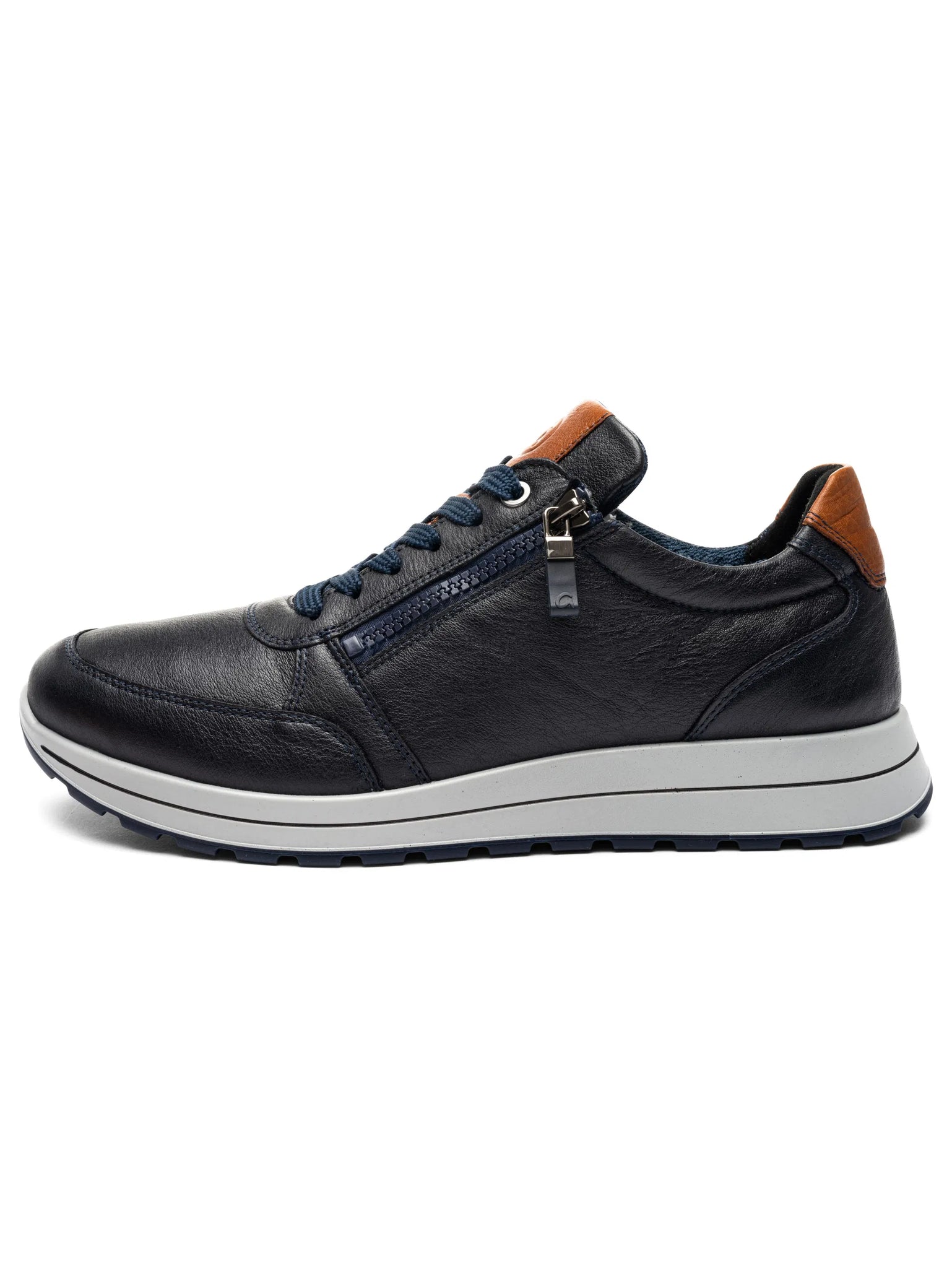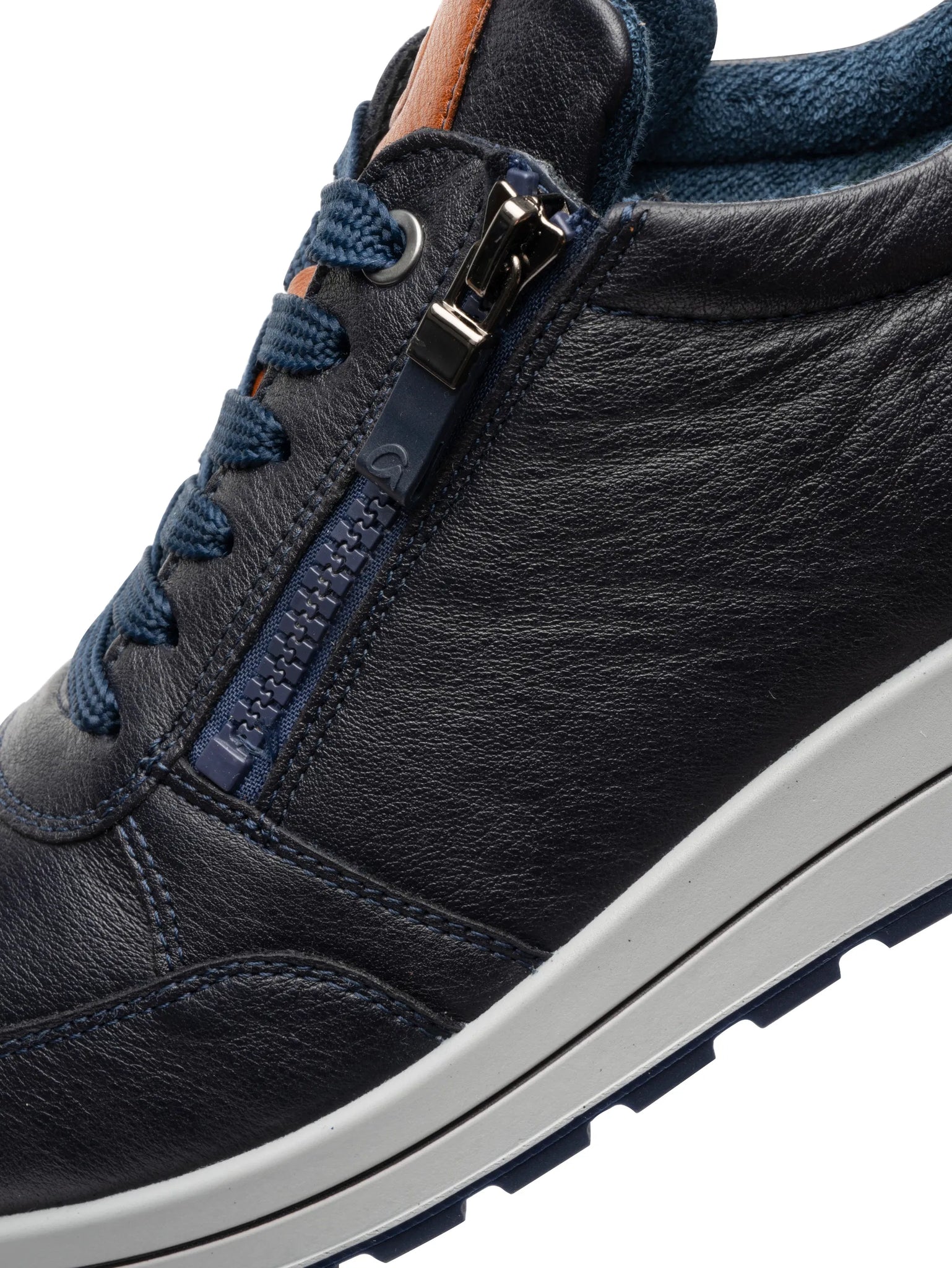 Sneakers in pelle blu con lacci e cerniera laterale. Fodera in spugna di bambù. Plantare estraibile rivestito in spugna delicata sulla pelle. Ara la scarpa ideale per il tempo libero che ti renderà felice ogni giorno.