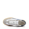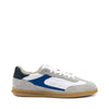 Sneakers in pelle scamosciata ghiaccio con riporti in pelle blu e tessuto bianco. Sottopiede morbido estraibile in memory. Suola flessibile e moderna in gomma. Vestibilità regolare.