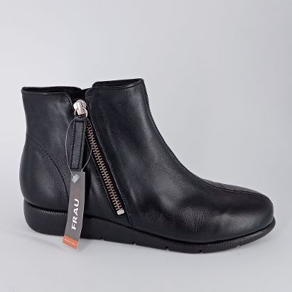 Frau . Tronchetto in pelle nera con elastico all'interno e cerniera all'esterno.