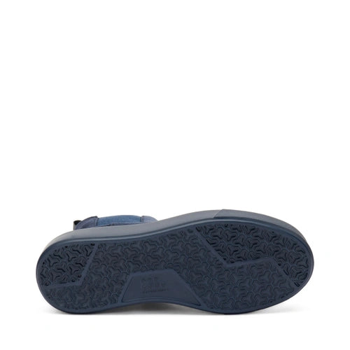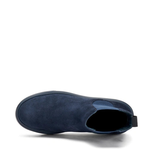 Beatles in pelle scamosciata blu con elastici bilaterali. Interno foderato in morbido e caldo tessuto. Sottopiede estraibile foderato in Lycra. Suola leggerissima.