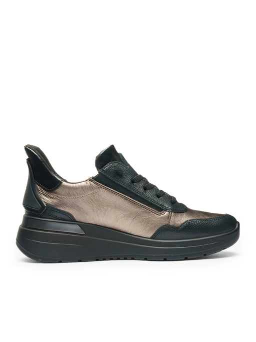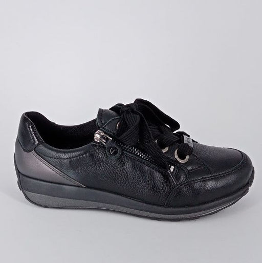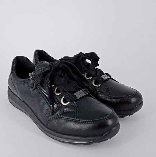Ara - Sneakers in pelle nera con lacci e zip .