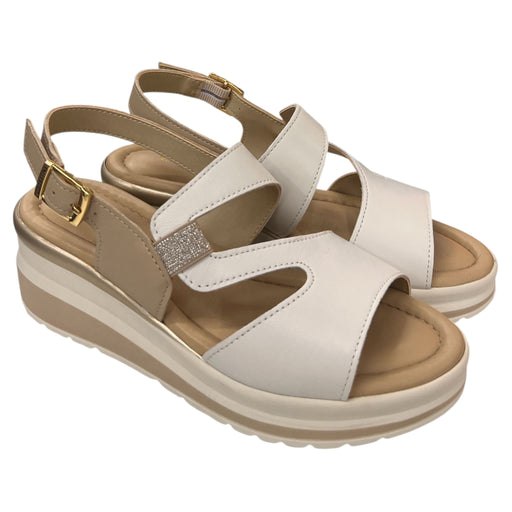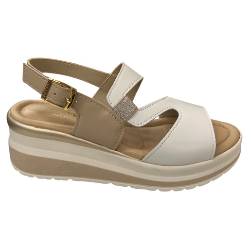 VALLEVERDE - Sandalo in pelle bianca e beige.