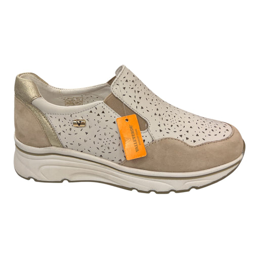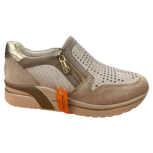 VALLEVERDE - Sneakers donna in camoscio e pelle bianca e beige