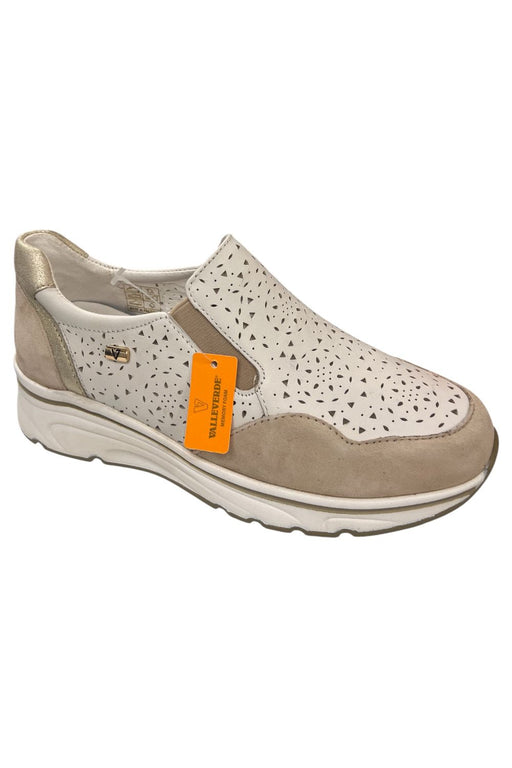 VALLEVERDE - Slip on donna in camoscio e pelle bianca e beige.