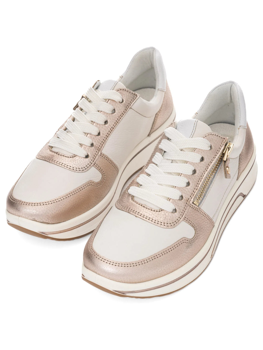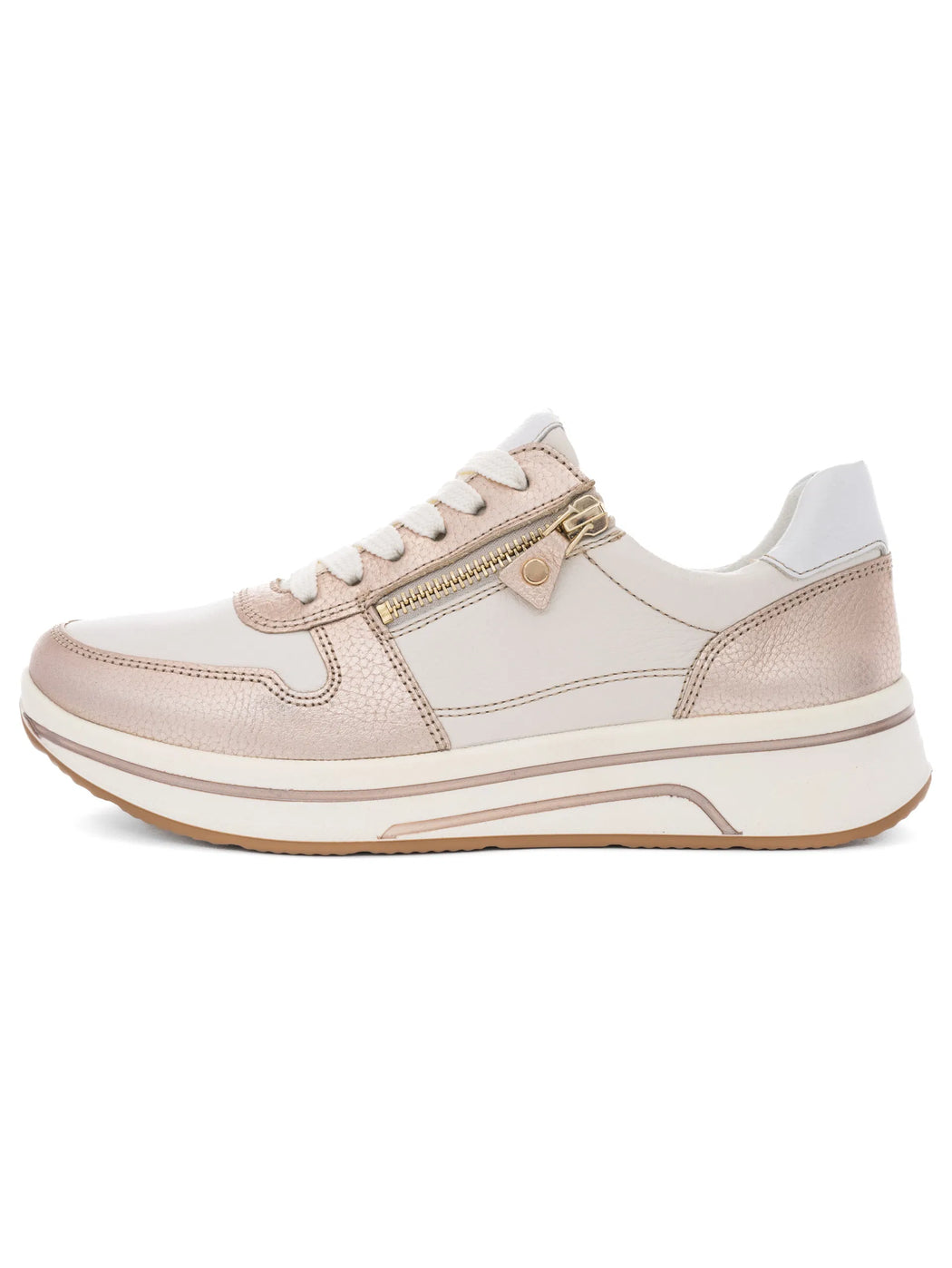 Questa sneakers ultraleggera di Ara offre comfort e stile grazie alla tomaia in pelle morbida e all'imbottitura su tutto il gambale. L'allacciatura combinata con la cerniera permette una calzata facile e personalizzabile. L'interno in morbida spugna mantiene il piede fresco e asciutto, mentre il plantare estraibile si asciuga rapidamente. La tecnologia HighSoft garantisce un comfort duraturo, mentre il design alla moda completa il look. Calzata comoda .