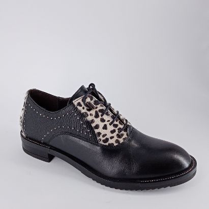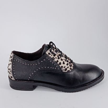 CAFENOIR . Scarpa nera allacciata con riporti animalier 50%