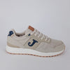 Scarpe casual con lacci da uomo in nabuk e tessuto beige con riporti a contrasto blu . Fodera e sottopiede in tessuto e suola in gomma Durability con sistema FLEXO flex line .